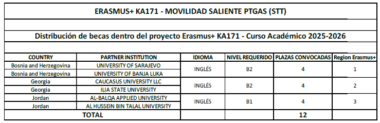 El Vicerrectorado de Internacionalización convoca ayudas financieras para PTGAS para movilidades en el marco del Programa ERASMUS+ Acción KA171 para el curso académico 2025/2026.